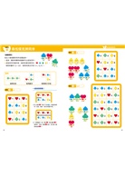 如果發現有些題目,孩子還需要實際動手操作輔助思考,可以影印書中頁面,或是利用套書所附贈的「趣味遊戲圖卡」,讓孩子能透過剪下的拼圖、七巧板、顏色方塊等配件,實際轉向並放在書上比對,增加趣味提高成就感!