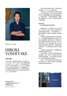 香川縣出生,大學畢業後進入「KIHACHI」工作。之後在東京都內幾間店鋪學藝,參與亞洲、法國、環太平洋等各式料理的製作及店鋪營運。2005年,開設以食品安全、與生產者合作為主題的有機餐廳「HOKU」(東京池尻)。2013年遷居至新潟三条市,開設現在這家店。一邊享受自己種菜、到海裡釣魚、在山上打獵的樂趣,一邊探求活用那些食材的料理與生活風格。