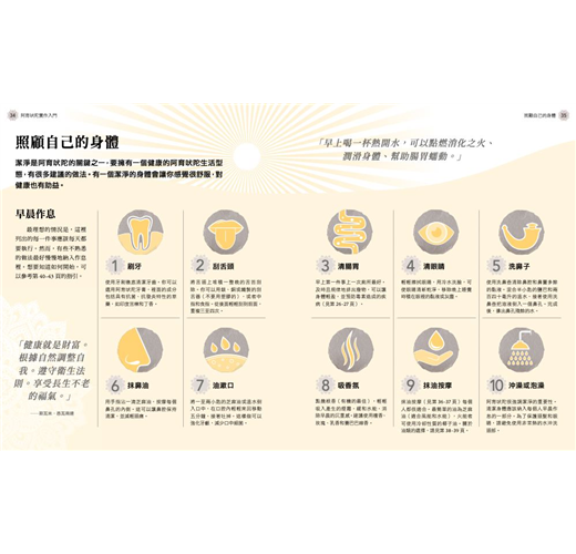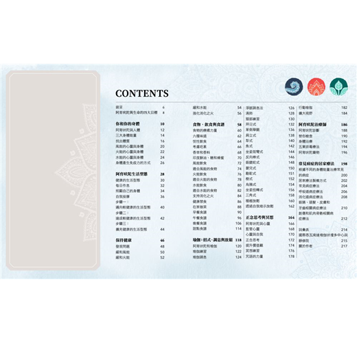 書中循序漸進,將阿育吠陀這門古老的藝術與科學分為幾大章節:
