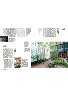 書中,還提供了大量的住宅與庭園實例,並以平面圖詳盡羅列、標示植栽配置與品種,並清楚解說景觀設計的種種法則,同時也從實務面下手,以職人的角度,提供專業施作注意要點,例如:樹與房子的關係、選配樹種的重點、高木修剪法、草皮的管理、庭園植栽預算、水路的安排、土壤計畫、室內植物景觀規畫……