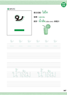 本習字帖除了讓你用手、用眼,學習泰文字母外,也特別收錄代表單字、例字及MP3音檔!