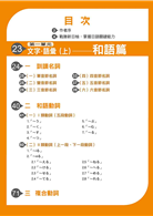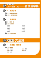 「文字、語彙」細分為和語篇及音讀漢字篇,不僅用音節數及按五十音分門別類,相似動詞中還加上例句,讓您能在最短時間內,分辨單字間的不同,進而抓住快速解題的訣竅!「和語篇」分成七部分,分別為一、訓讀名詞,二、和語動詞,三、複合動詞,四、形容詞,五、副詞,六、外來語,七、接續詞,幫助讀者平日背誦以及考前總複習,只要記住這些語彙,不僅「文字‧語彙」相關考題可以拿到滿分,亦有助於理解「讀解」之文章。請搭配音檔學習,效果更佳。