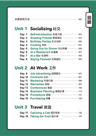 包括「Unit 1 Socializing 社交;Unit 2 At Work 工作;Unit 3 Travel 旅遊;Unit 4 Entertainment 娛樂;Unit 5 Lifestyle 生活方式」五大篇,共收錄40個單元主題。