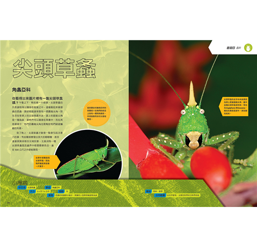 ․最齊全的昆蟲資料,搭配上百張清晰的全彩圖片,收錄地球上最古怪、酷炫的蟲蟲。