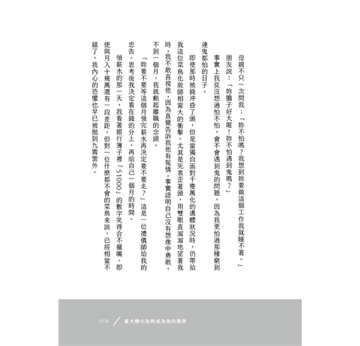 「因此我更加珍惜與每一位亡者的緣分,他們讓我知道我的存在有多麼重要。」
