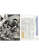 「新院」指崇德上皇。本書十二頁右上的扉頁插畫裡,他也被稱為「崇德院」,圖中的上皇只能看到背影,正面鏡中映出的身影則跟這一頁的插畫有關(鏡中的身影採用淡墨效果)。崇德上皇發動保元之亂失敗後,被流放到讚岐國。為朝則因為加入崇德天皇的隊伍,所以嚐到失敗的苦果。馬琴的作品以這段史實為根據,又加入了大量的想像。小說裡的崇德上皇始終無法消除心中的怨恨,所以去世之後,他的靈魂飄向魔界,變成了魔王。插畫裡的滾滾黑雲,正是北齋最擅用的筆法,魔王的髮絲隨風飛揚,腦袋甚至從插畫上方的框邊裡冒了出來。北齋自在又靈活地操縱筆鋒,那種魄力不禁令人聯想現代動漫的原點。