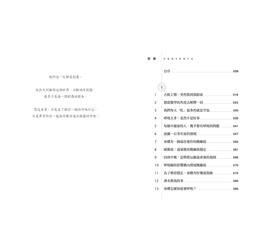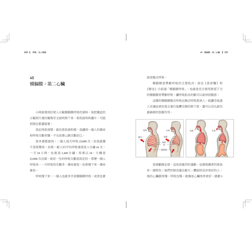 * 清晰的圖文解說,讓讀者一窺「一口氣進入身體,要經歷怎樣的旅程來維繫生命?」的身體奧秘。