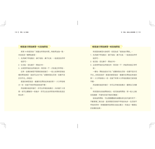 * 針對東方人、特別是華人文化的集體制約,調整了呼吸練習的重點與順序。