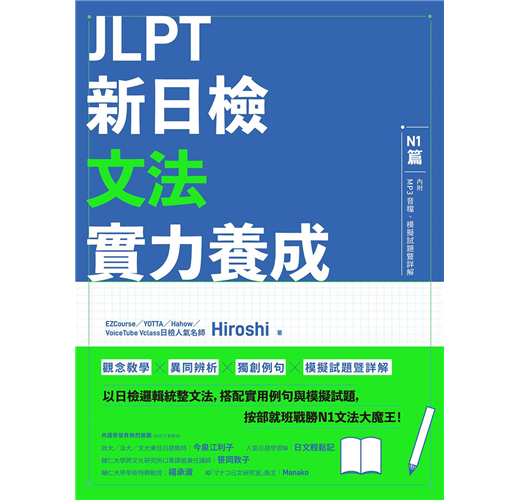 N1與N2難度落差極大,就算是日文系本科生也未必能一次通過,關鍵在於N1考題時常出現大量冷僻文法,正因為鮮少運用在日常生活中,學習者只能仰賴教科書來吸收,本書透過Hiroshi老師簡單明瞭的說明及統整,按照﹝觀念分析﹞→﹝例句示範﹞→﹝實戰測驗﹞→﹝試題詳解﹞四步驟,扎實掌握N1文法實力,讓你不再因為文法而N1落榜。