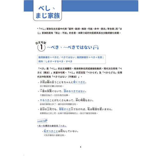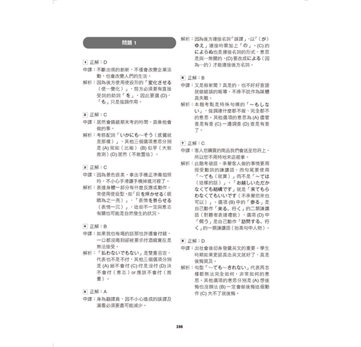 N1比起N2多了更多敬語、書面句型,甚至還有源自古文的文法,本書收錄「來自古文的現代文文法」解析,幫助讀者快速理解N1考題中出自古文的艱澀用法,例如時常在書信中出現的「親愛なる君へ」(給親愛的你),這裡的「なる」是古文的形容詞,其實就等於現代日語常用的形容詞「な」,只要熟讀 Hiroshi老師的詳盡解析,就能從根本理解看似困難高深的文法,比起單純背誦更記得牢。