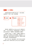 ■「1 + 1 答題法」應對一般生活話題。用「1快答+1延伸」的方式,透過舉例說明、解釋原因、提供細節、提出比較、發生頻率、未來計畫等六大延伸法迅速答題。