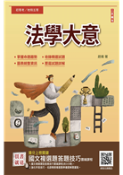 法學大意命題範圍橫跨法學總論、公法、民法、刑法與其餘相關訴訟制度,範圍之廣,常讓考生不知該從何準備起。然由歷屆試題分析可見,只要具備了基本觀念並掌握常考條文,七、八成的分數即已在手。有鑑於此,三民輔考名師依據多年教學經驗,由歷年出題範圍精煉出四大章節十六個重點,並配合112年1月最新公布法規精心修訂,讓讀者能快速抓到關鍵考點,掌握得分要領。