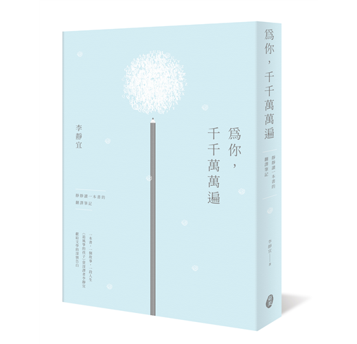 《為你,千千萬萬遍--靜靜讀一本書的翻譯筆記》是李靜宜與23本書的故事,她以動人的感性之筆,寫下這一篇篇鏤刻時光,紀錄人生風景的筆記,娓娓道出一名譯者如何愛上一本書,如何從文學翻譯中找到改變人生的力量;同時也讓我們第一次從譯者的角度,看見這些年感動我們的好書背後,感人至深的故事。