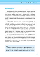 所有全民英檢測驗的三個部分,都是循序漸進:由第一部分的字詞,第二部分的段落,更進而到第三部分的文章。此部分測驗的短文通常有說明文、論說文、故事、信件、e-mail、廣告、新聞等等。短文之後有2~6個相關問題,而考生答題至此,或許會有時間剩下不多的壓力,所以此部分的應考技巧非常重要,甚至攸關整個測驗的成敗。因為整個測驗的40題,此部分就佔了20題,還要閱讀多篇短文,心一急、汗一流,就泡湯了。若是在前兩個部分時間沒浪費,此部分又能善用技巧,將全部題目做完,甚至還有時間剩下時,那過關的機率就大增了。因此,筆者在此建議,平常閱讀文章時不妨以測驗的心態來練習,也就是說,測驗時既然不能查字典,平常看文章的時候也不要查字典,遇到生字馬上查字典,固然也是方法之一,但是速度太慢,不足以應付考試。可以試著由主題句來衍生探索,由上下文來猜意思,由句中的同位語來了解,或許會有意想不到的輕鬆感與自信心。此外,也可藉助各句的字面所提供的訊息與文章的脈絡,去掌握主旨,體會作者的觀點。"