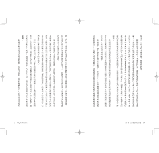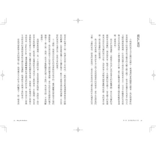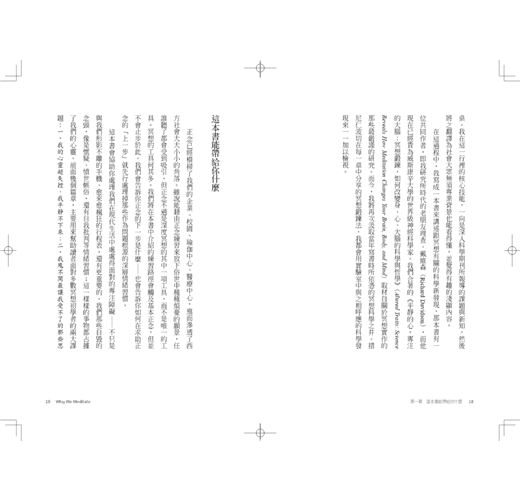 不論是對冥想心存懷疑或裹足不前者的人,還是對冥想已經經驗豐富的人,這本書都是寶藏,它具有供人去實踐、去思考的價值,既個人化又實用。
