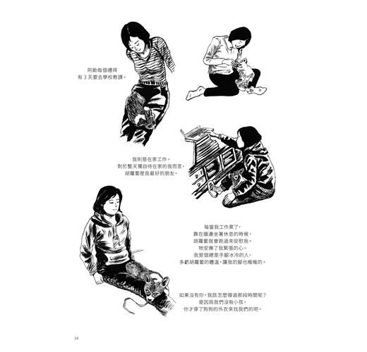 如果說《有狗的日子》的主線讓讀者看到人能為同伴動物的幸福努力到什麼程度,溫暖得令人動容,那麼充斥其間的支線,則如一首「狗兒都哪去了?」的輓歌,無奈得令人喟嘆。透過生動的圖文表現,金錦淑讓她筆下的每一隻狗,都有了烙在讀者心上的重量。