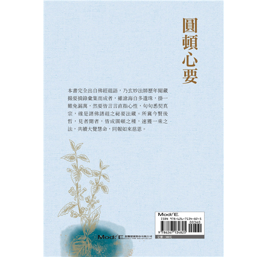 本書完全出自佛經祖語,乃玄妙法師歷年閱藏撮要摘錄彙集而成者,雖滄海自多遺珠,掛一難免漏萬,然要皆言言直指心性,句句悉契真宗,確是諸佛諸祖之祕要法藏。所冀今賢後哲,見者聞者,皆成圓頓之種,速獲一乘之法,共續大覺慧命,同報如來慈恩。