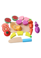 【產品特色】藉由簡易的遊戲動作,讓孩子以木製小刀專注切開具磁性的蔬菜和水果,再將它們重新貼合,不僅可促進肢體肌肉的發展及手眼協調能力,還能同時認識蔬果的名稱、顏色,並了解它們的切面結構;切開蔬果時的聲音,可刺激聽覺,增添趣味性。本產品以天然原木仿真實蔬果外觀製作,圓潤無尖角,好拿、好握,遊戲更安全。