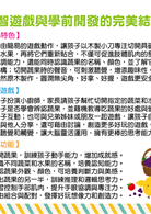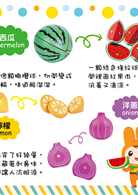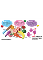 【延伸遊戲】孩子扮演小廚師,家長請孩子幫忙切開指定的蔬菜和水果,測驗孩子是否學會辨認蔬果,並藉機教導吃蔬果的好處與營養,增加親子互動;也可與兄弟姊妹或朋友一起遊戲,讓孩子自然而然習慣與他人分享,還可藉由討論,創造更多好玩的遊戲,刺激視覺、聽覺和觸覺,讓大腦靈活運用,擁有更棒的思考能力。