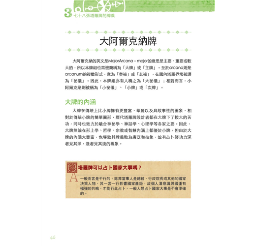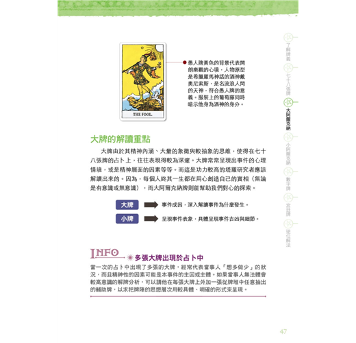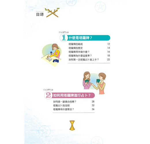 1從「第一次接觸塔羅占卜」的角度出發,提綱挈領,提供入門者明確而可依循的學習途徑。