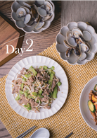 沙茶牛肉、豆包蛋、木耳芥蘭、蘿蔔排骨湯