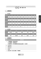 對於想要進行考前複習,以演練大量題庫的方式在短期內達到成績三級跳目標的考生,本書提供了分類題庫500題、模擬試題225題、歷屆試題785題,另外更包含雲端題庫2925題,只要持之以恆反覆演練,並釐清自己不熟悉的部分,必能在正式考試中脫穎而出!本書共分為以下部分: