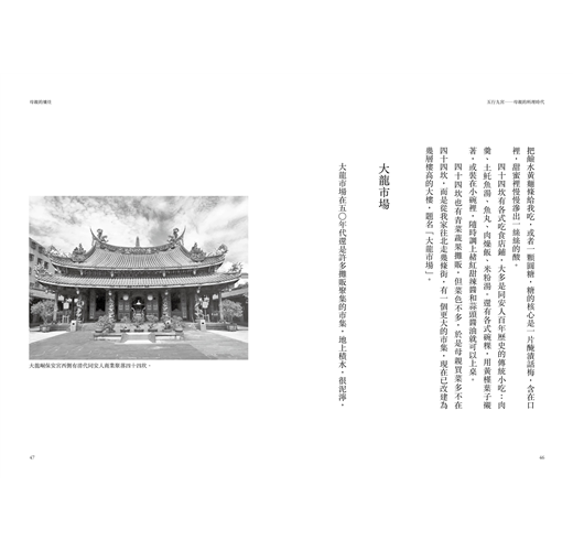 大龍市場在五○年代還是許多攤販聚集的市集,地上積水,很泥濘,買菜的人很多,摩肩擦踵,小販吆喝,跟顧客攀談,討價還價,熱鬧非凡。