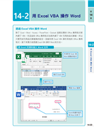 4~16 章,詳細說明 VBA 的屬性及方法,並搭配範例及逐步的操作圖解,逐行解說程式碼,讓你確實理解每一行程式的含義及處理內容。
