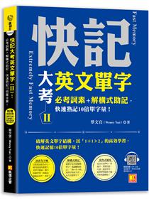 「字彙」是語言的基礎!擁有越多的字彙量,意味著能更深、更廣地運用該語言。因此英語學習者在學習文法句型的同時,必須盡可能地增加自己的字彙量。然而,英語字彙量之龐大,使許多英語學習者將「背單字」視為一件苦差事—背完國小必備的300字之後,緊接著要背國中必備的1,200單字,然後隨之而來的是高職生的常用4,500單字或高中生的常用6,000字彙。對那些要準備到國外繼續深造的人來說,必須認識的英語字彙量更是沒有極限。沒錯,從「數量」看來,大部分的英語學習者要面對的英文字彙量似乎一山還有一山高,總讓人感覺登頂無望,因為怎麼...