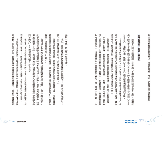 看完這本書,我對喜劇演員完全改觀,謝謝他們這麼努力的讓這個世界變得有趣,讓人在忙碌的工作之餘,能夠因為他們的表演開懷大笑,忘卻一切煩憂。這是一本很棒的人生故事,它沒有教我如何成為喜劇演員,而是告訴我專注努力在夢想,有一天終會站上屬於自己的舞台。