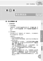 此部分由三民輔考權威名師依據最新命題大綱編寫,共分成4章,27個主題,內容涵蓋:1.個人、家庭、社會與文化、2.國家、政府與政治、3.民主與法治、4.生產、分配與消費。每章皆有重點整理加精選試題,關鍵考點並特別標示,輔以表格歸納整理相似觀念,易混淆處加強耳提面命,模糊概念輕鬆明瞭,有效幫助考生融會貫通公民考科內容。
