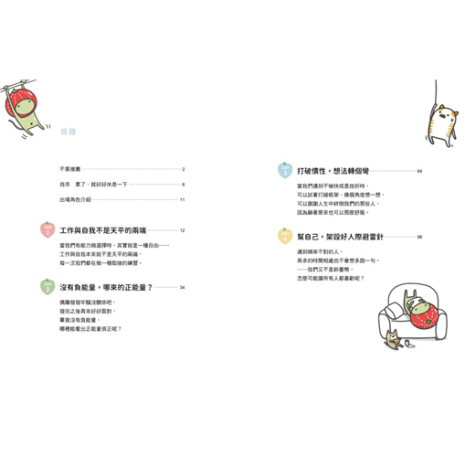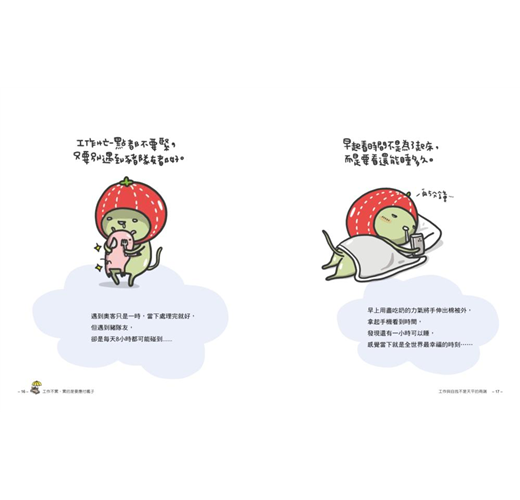 如果還有什麼讓你在職場煩心的鳥事,不如今天給自己一個假日,躺在沙發上好好細細品味這本一篇篇圖文。交給草莓頭毛毛蟲擊退你的負能量,找到心出口,轉頭才發現又是可愛的一天!