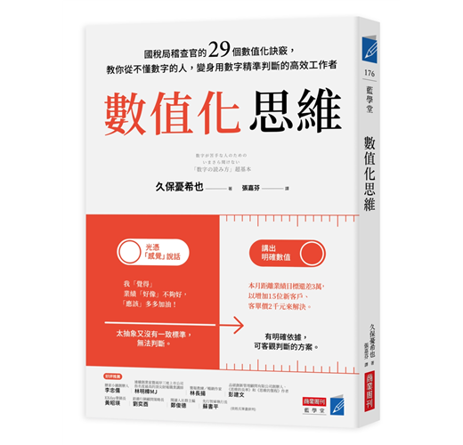 「數值化思維」是工作者的基本功。擁有「數值化思維」,就不再依賴「我認為」、「大家都說」、「我很努力」等不精確的直覺與情緒,改用「數字」這項職場共通語言,以「營收數字」「天數」「毛利率」…….精準訂定目標、提案、溝通,高效解決問題。