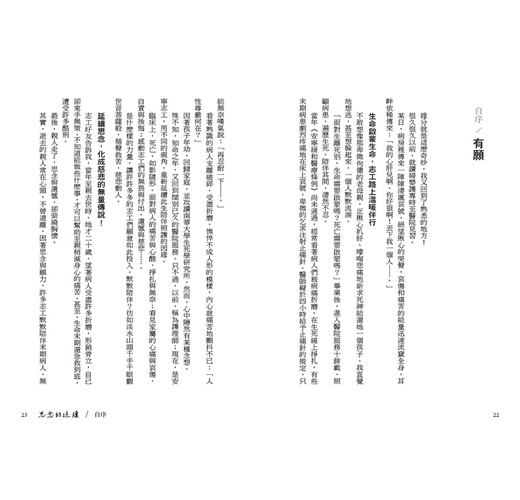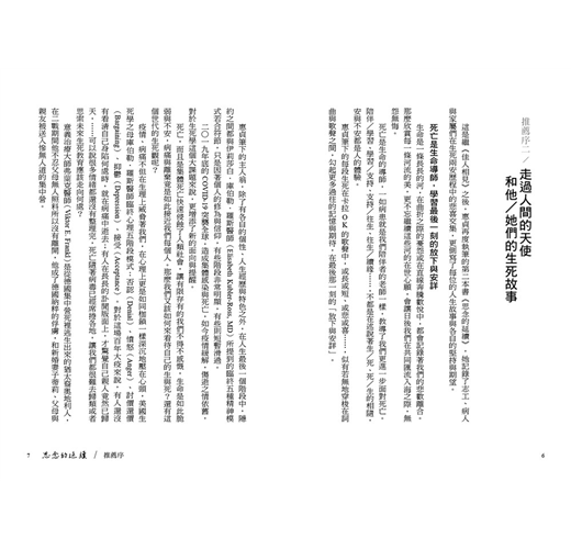 ▲死亡是生命導師,學習最後一刻的放下與安詳 生命是一條長長的河,在曲折之際的憂怨或在直線奔騰歡悅中,都會記錄著我們的悲歡離合。 那麼欣賞每一條河流的美,更不忘繼續這些河的在世心願,會讓日後我們在共同匯流入海之際,無怨無悔。 死亡是生命的導師,一如病患就是我們陪伴者的老師一樣,教導了我們更進一步面對死亡。 陪伴/學習、學習/支持、支持/往生、往生/續緣……,不都是在述說著生/死、死/生的相隨,安與不安都是人的體驗。 惠貞筆下的每段生死在卡拉OK的歌聲中,或長或短、或悲或喜……,似有若無地穿梭在詞曲與歌聲之間,勾起更多過往的記憶與期待,在最後那一刻的「放下與安詳」。 惠貞筆下的主人翁,除了有各自的個性、人生經歷與特色之外,在人生最後一個階段中,隱約之間都與伊莉莎白.庫伯勒.羅斯醫師(Elisabeth Kubler-Ross, MD)所提到的臨終五種精神模式若合符節,只是因著個人的修為與信仰,有些階段非常明顯,有些則短暫滑過。 2019年底的COVID-19 突襲全球,造成集體感染與死亡,如今疫情緩解,傷逝之情依舊,對於生死學這個大課題來說,更增添了新的面向與提醒。 死亡,而且是集體死亡快速侵蝕了人類社會,讓有限存有的我們不得不感慨,生命是如此脆弱與不安,病痛與離棄竟是如此接近我們每個人。那麼我們又該如何來看待自己的生與死?還有這個世代的生死觀呢? 疫情、病痛不但在生理上威脅著我們,在心理上更是如同枷鎖一樣深沉地壓在心頭,美國生死學之母庫伯勒.羅斯醫師臨終心理五階段模式:否認(Denial)、憤怒(Anger)、討價還價(Bargaining)、抑鬱(Depression)、接受(Acceptance)。對於這場百年大疫來說,有人還沒有看清自己身陷何處時,就在病痛中逝去;有人在長長的訃聞版面上,才驚覺自己親人竟然已歸天,……可以說很多情緒都還沒有整理完,死亡隨著病毒已經席捲各地,讓我們都很難去歸類或者思索未來生死教育應該走向何處? 意義治療大師弗蘭克醫師(Viktor E. Frankl)是從德國集中營死裡逃生出來的猶太裔奧地利人,在二戰期間他不忍父母無人照料所以沒有離開,他成了德國納粹的俘虜,和新婚妻子蒂莉、父母與親友被送入慘無人道的集中營。 他慘痛地看著父親因著饑餓病死在他的懷裡、母親被送入毒氣室、兄長在勞役中喪命、妻子則在英軍解放該處集中營前早遭納粹的毒手,成了大屠殺下的犧牲者。 弗蘭克把他之所以能夠活著走出集中營,歸因在他從始至終就想把《醫師和心靈》(The doctor and the soul)這本丟失的書稿再度寫出來,因著這個信念,他克服了在集中營的不良條件,甚至於傷寒的侵襲,讓他堅信自己一定可以完成這個使命。等他寫出最新一版《醫師和心靈》的書稿時,在集中營的所有經歷成為新增的章節。