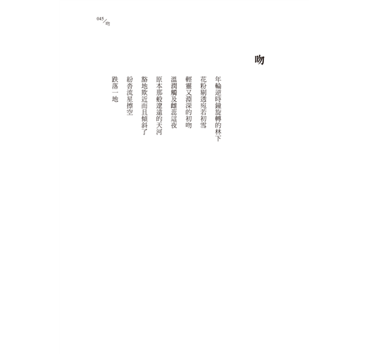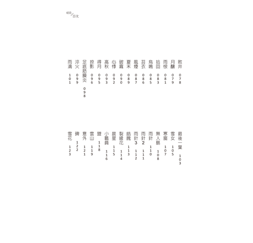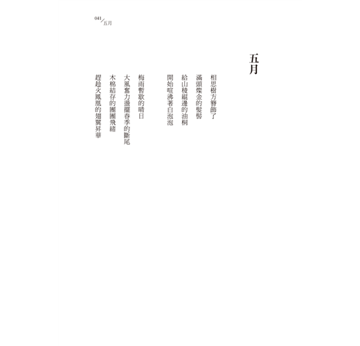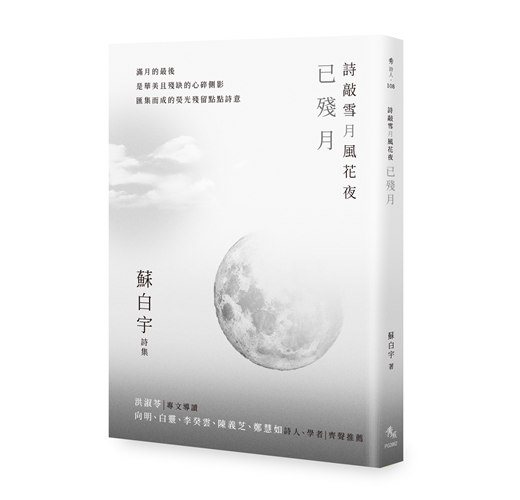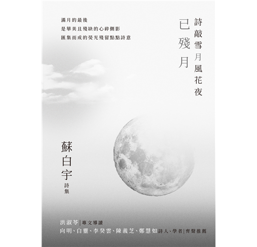 她是──主婦的代言人、都市的速寫者、自然的歌詠者、時間的行路人。蘇白宇執著地凝望想愛的人、想愛的生活,用文字捕撈起日常瑣碎中的詩意。《待宵草》、《一場雪》、《昨夜風》、《已殘月》四本詩集承載了她近五十年的歲月軌跡,分別代表蘇白宇不同年華的思懷與感悟。