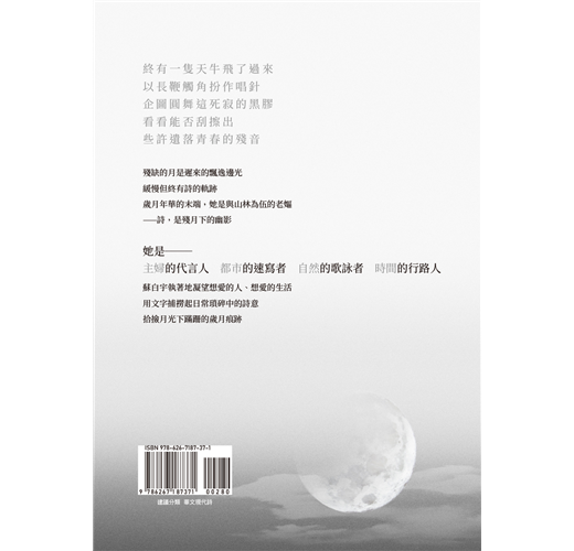 殘缺的月是遲來的飄逸邊光,緩慢但終有詩的軌跡。歲月年華的末端,她是與山林為伍的老嫗——詩,是殘月下的幽影。
