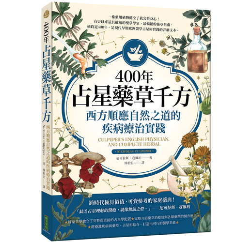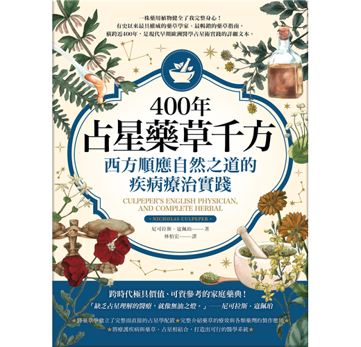 如果你對寇佩珀感興趣,卻礙於語言門檻,之前遲遲無法接觸原典,千萬不要放棄閱讀中譯本的機會。事實上,十七世紀的人們也有著一樣的煩惱,過去一切醫療典籍全用拉丁文撰寫,必須受過高等教育才看得懂,而白話英文寫成的《400年占星藥草醫典》與《400年占星藥草千方》完全打破了壟斷局面。