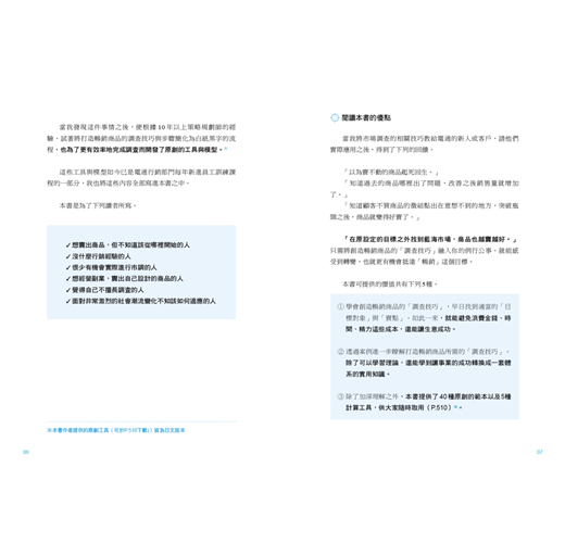 因此本書才將「調查」納入銷售商品的流程,介紹早一步找出理想的「目標對象」與「賣點」的技術。