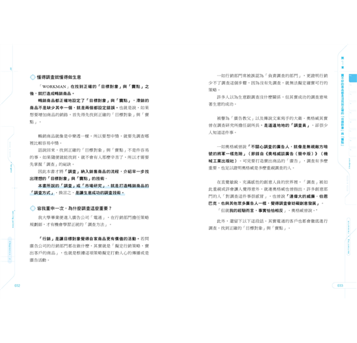 一如奧格威曾說「不關心調查的廣告人,就像是無視敵方暗號的將軍一樣危險」(節錄自《奧格威談廣告(簡中版)》(機械工業出版社)。可見要打造賣出商品的「廣告」,調查有多麼重要,也足以證明奧格威是多麼重視調查的人。