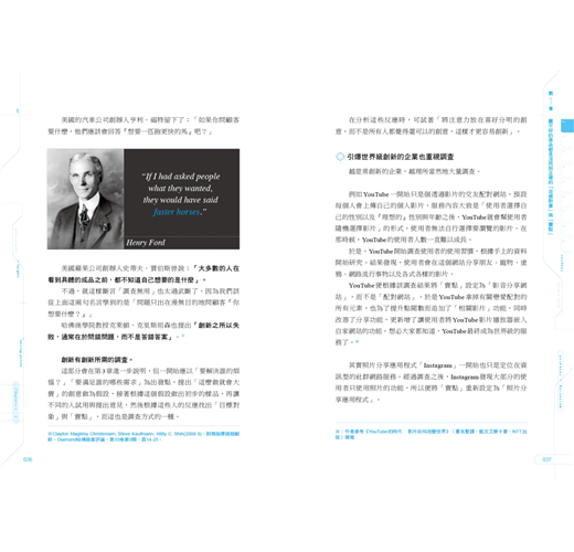 美國的汽車公司創辦人亨利.福特留下了:「如果你問顧客要什麼,他們應該會回答『想要一匹跑更快的馬』吧?」