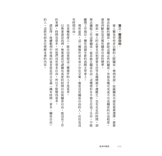 我對富者的定義是,擁有時間、人際、金錢這三種自由的人。