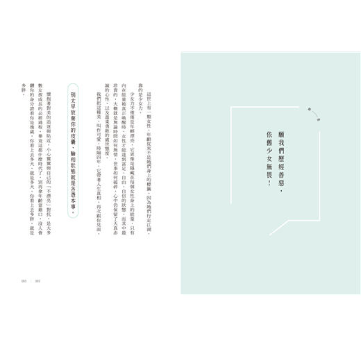 少女的定義從來不是年輕漂亮,而是始終對世界有好奇,對自己有耐心。胖了就減,喜歡就買,沒錢就賺。不必糾結讓覺得你負面的事物。