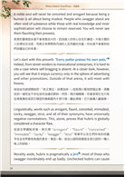 本書以中英文雙語撰寫。除卻在兩個語言之間原先已存有現成的對等語詞者(譬如「老王賣瓜,自賣自誇」對 “Every potter praises his own pots”),所有文字的翻譯皆屬新創,且完全出自本人手筆。