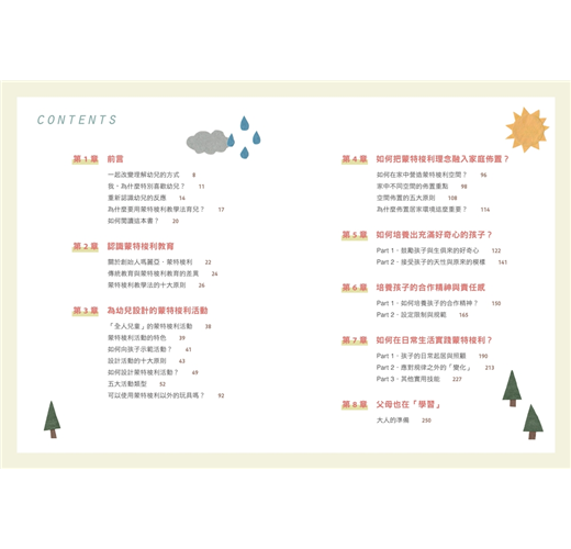 我想在這本書中,和各位分享我在學習之路上的見聞。我想把蒙特梭利的智慧翻譯成簡單的語言,讓人們能以更容易理解的方式於家庭中應用。無論你的孩子是否打算參加蒙特梭利學校,拿起這本書時,你已經在自己的旅程中邁出了一步,開始找到你和幼兒的另一種相處模式。