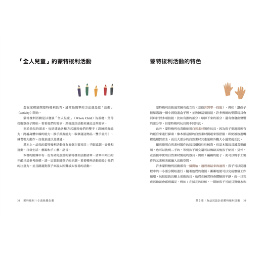 5. 全彩印刷,一目了然的圖解,清楚說明的文字搭配可愛插畫,適合所有對蒙特梭利感興趣的家長及所有師長、教育者閱讀。