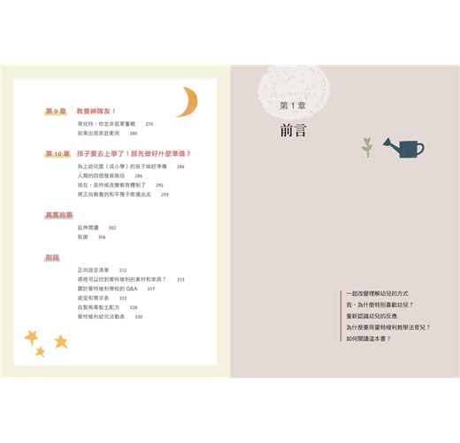 每一頁都是滿滿的育兒智慧,教你如何把家變成啟發孩子心智成長的最佳地點,這是在幼兒發展書籍中較少被提及的主題,本書正好補足了這塊空白。