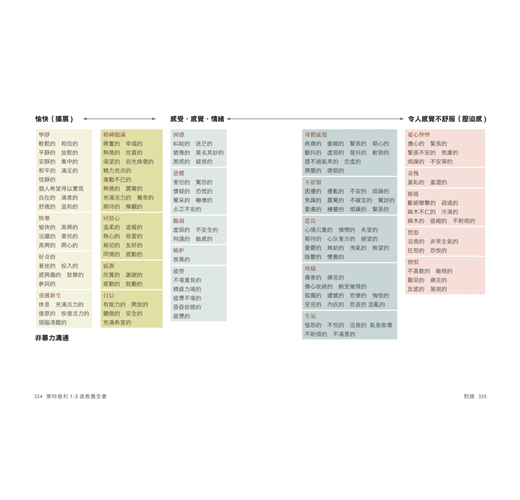 3. 附上各式小單元,如幼兒的敏感期清單、蒙特梭利1-3歲幼兒活動表、感覺和需求表、正向語言清單等。