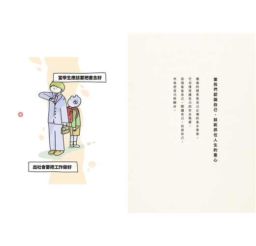 作者最後告訴我們:「請不要隨便對待自己。在展開漫長的一天前,或是結束一天的時候,請回到自己身邊。有時候即使別人不喜歡你,你就默默專心地走自己的路。這樣的舉動雖然渺小,但日後就會慢慢出現驚人的變化。」