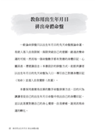 一般算命排盤只以出生年月日的先天命盤推論命運,易使人落入自我限制,侷限突破自己的意願、錯過改變命運的可能。然而每一個命盤數字都有對應的身體印記、心靈訊息、潛意識信念。本書提供讀者以出生年月日的先天命盤為入口,導引自己對應身體印記(知命)並進入自我覺察(改運)。