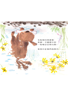 延用《翠翠掉下去了!》互動式翻頁設計,讀者必須打直書本,由下往上翻頁閱讀。除了增添池塘上下方位的趣味,也能翻轉書本、觀察水中倒影的世界。池塘邊更出現前作主角—水鳥翠翠等小動物,適合與孩子一同尋找小彩蛋。